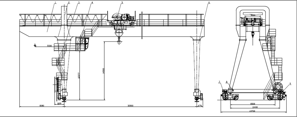 Menurut laman web ini, penyimpanan dan proses pengangkutan kontena dan memuat dan memunggah kenderaan; jarak ialah 26m, 30m, 35m; cantilever dengan atau tanpa cantilever, cantilever tunggal dan cantilever ganda dan bentuk struktur lain; ketinggian mengangkat mempunyai tiga hingga empat, longgokan dibahagikan dengan lima; kereta atas berputar dan penyebar bawah berputar.